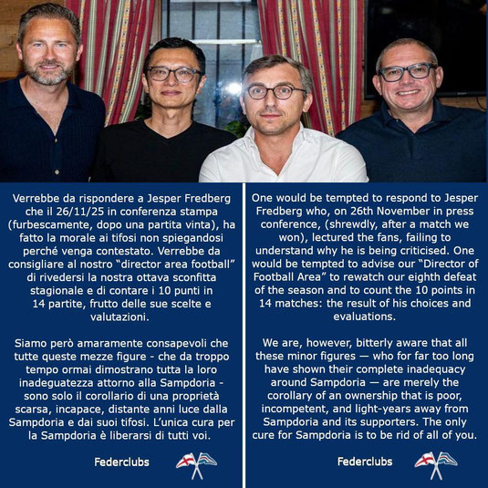 non solo la prima squadra, ma le strutture, le giovanili, la Samp Women, la trasparenza della Samp stessa. La Sampdoria vale di più, i Sampdoriani meritano di più. Federclubs