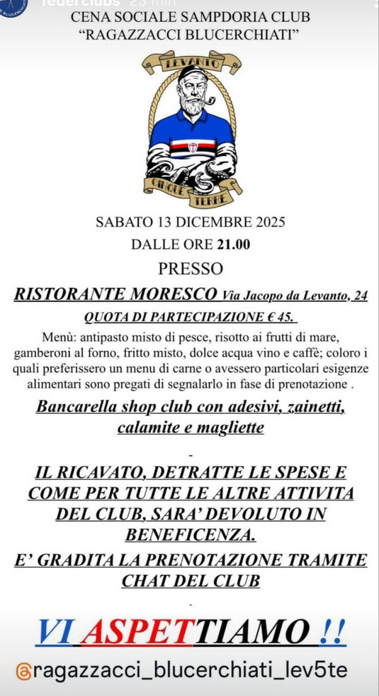 Il calendario sarà disponibile presso i locali di Federclubs già per Sampdoria-Juve Stabia di lunedì 24/11 e prenotabile già ora attraverso il vostro club di riferimento.